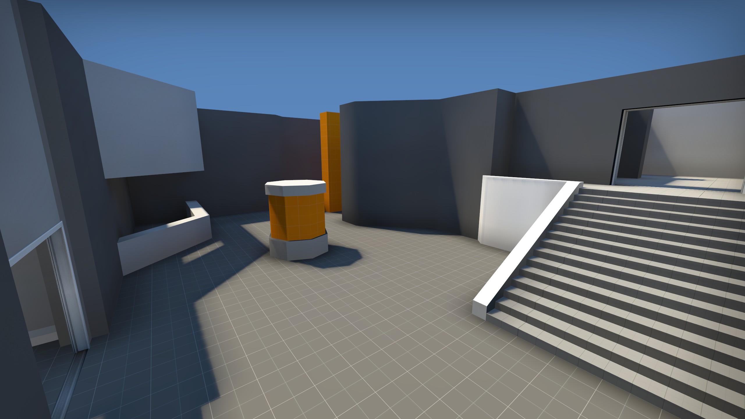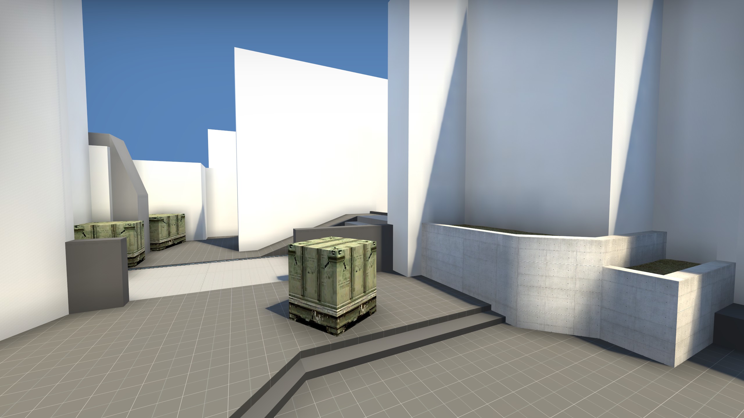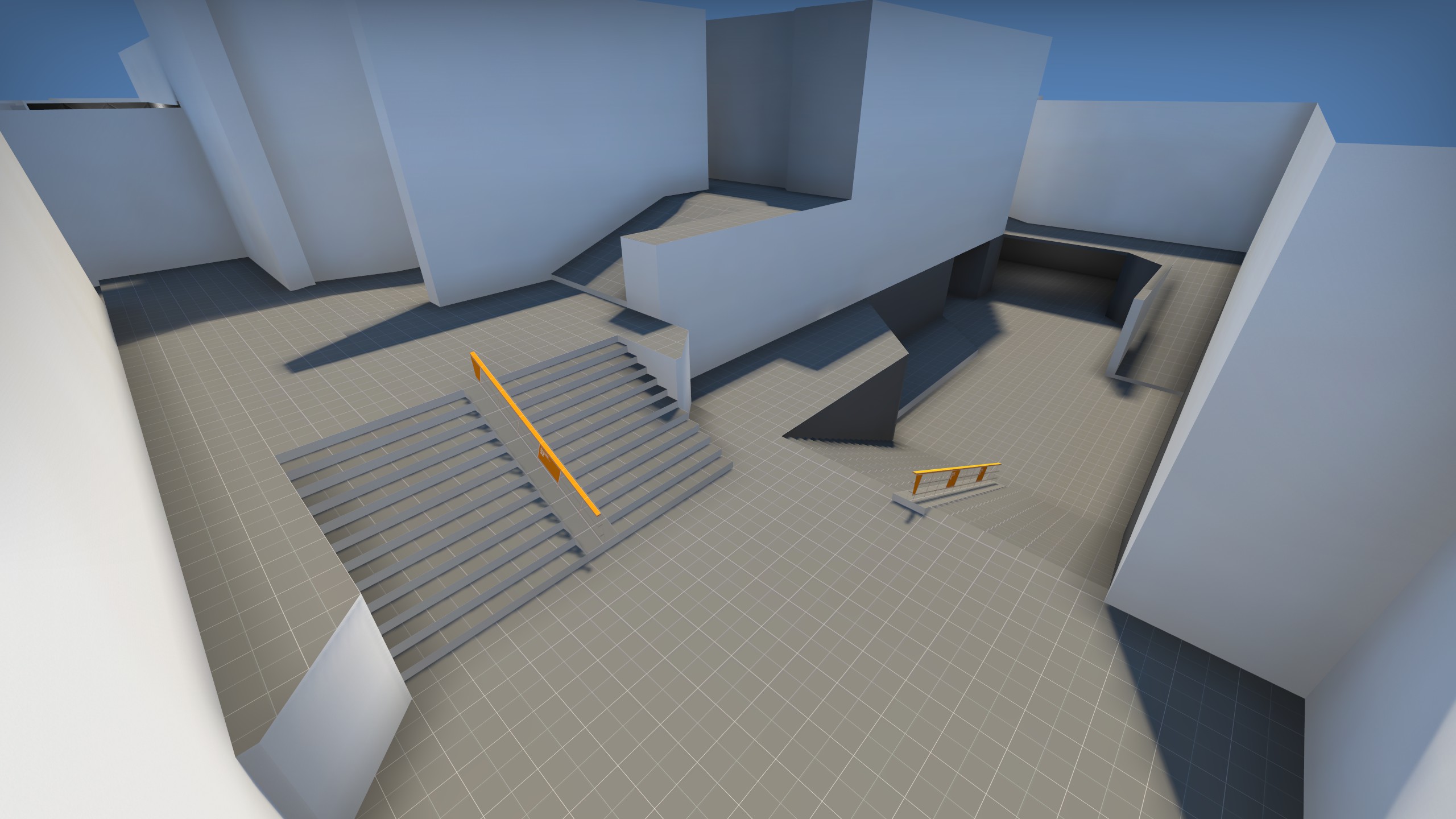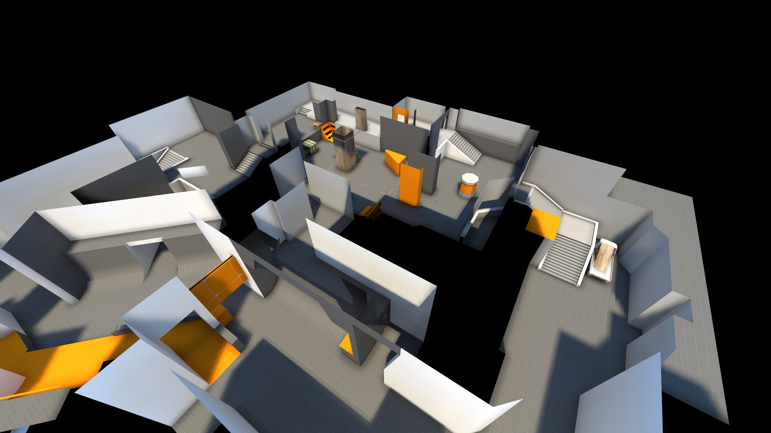 Another short-lived project which began soon before I burned out on Counter-Strike mapping until I created de_Gnar, Silicon was another more experimental 5v5 Defusal layout which saw limited testing and iteration. It was set within the main R&D center of a prominent tech company, and featured increased focus on one-way drops and distinct layers of verticality. While I was quite proud of the odd layout and unique gameplay elements it incorporated, playtesters were not as fond of it.
