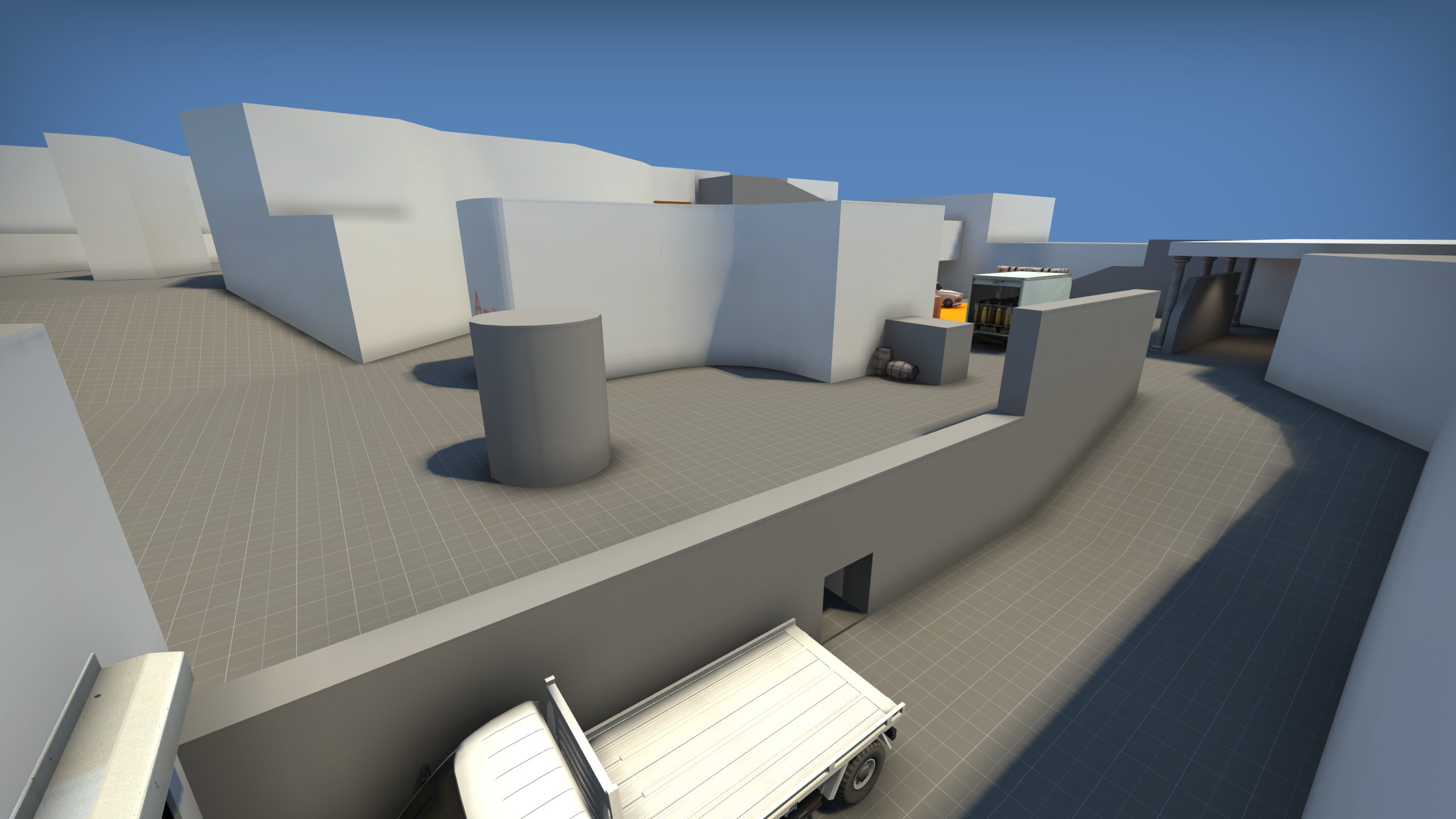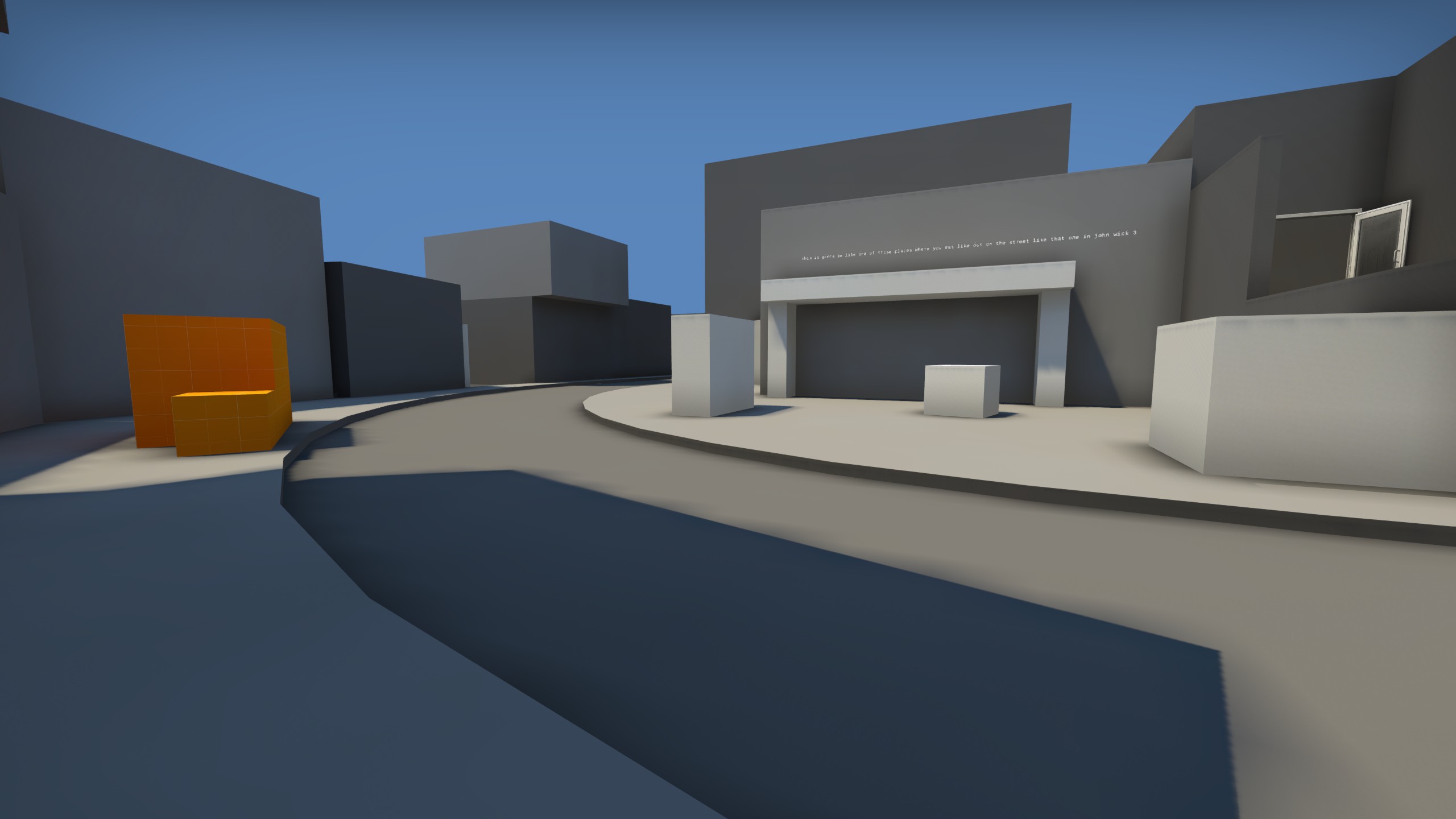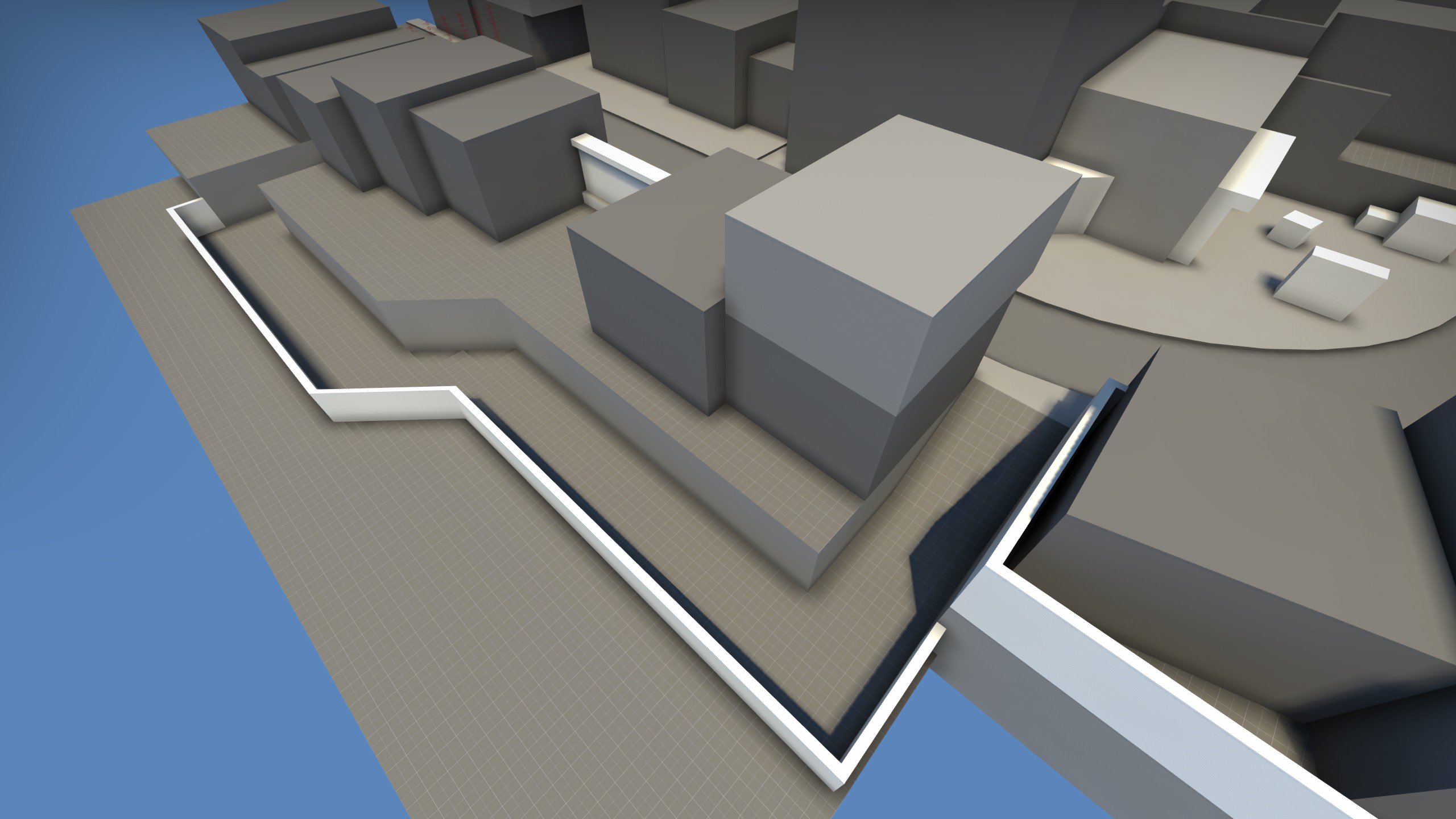 Polis was a defuse map heavily inspired by Inferno, featuring a main and an "alt" middle route to fight over. The map began its existence as a quick note thrown down for the main middle area taken while at a volleyball tournament, which would soon get its own standalone blockout. A few months later, a new plan iterating on that idea was drawn out, and Polis came into existence. The map was fun to play, but didn't see much development due to burnout with Counter-Strike at the time. It is a map which I would like to return to at some point.